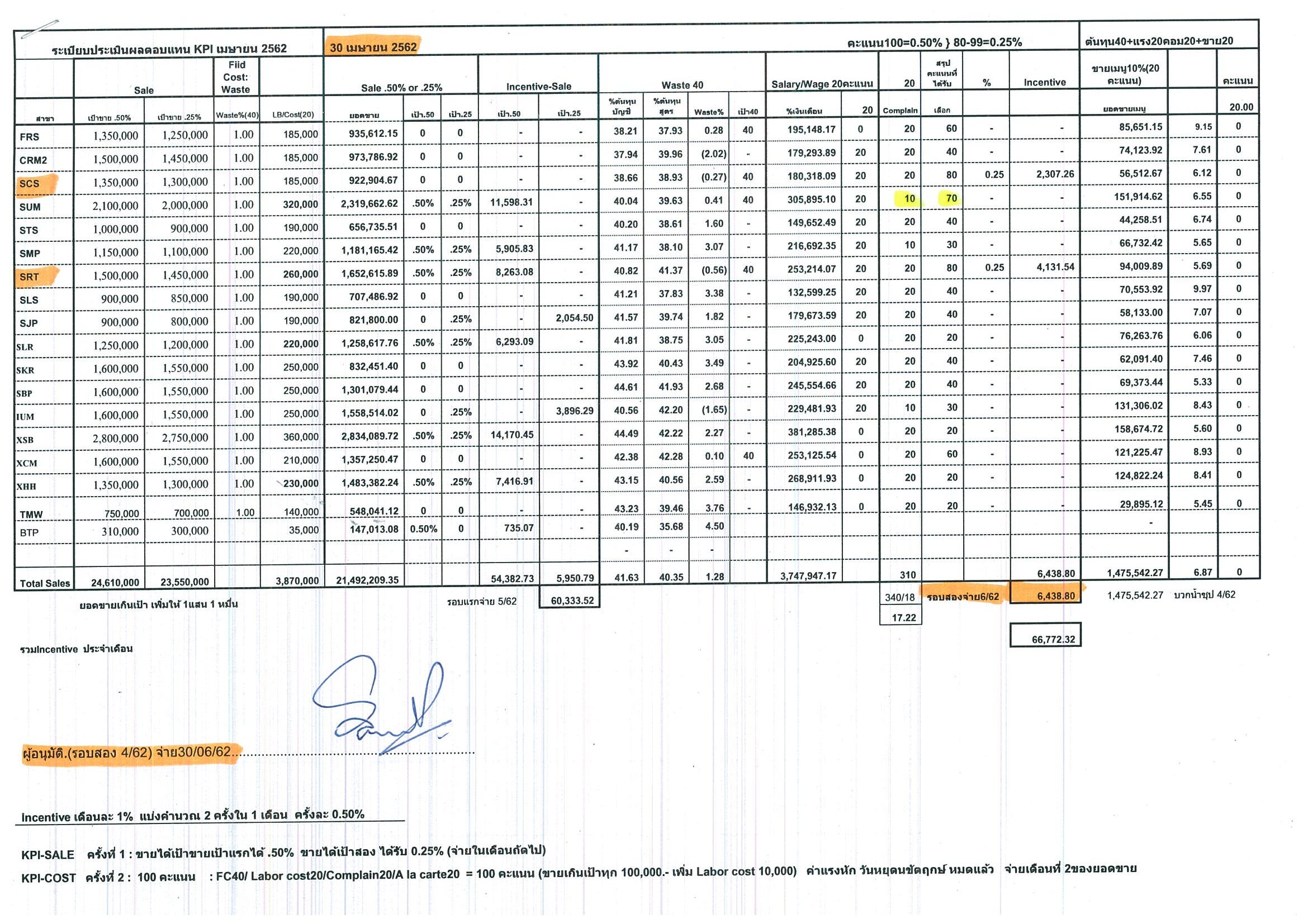 KPI รอบสอง เดือนเมษายน จ่ายเดือนมิถุนายน 2562