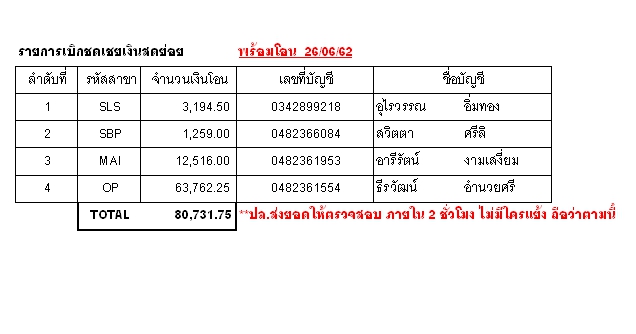 Re: ยอดโอนชดเชยเงินสดย่อย SLS+SBP+MAI
