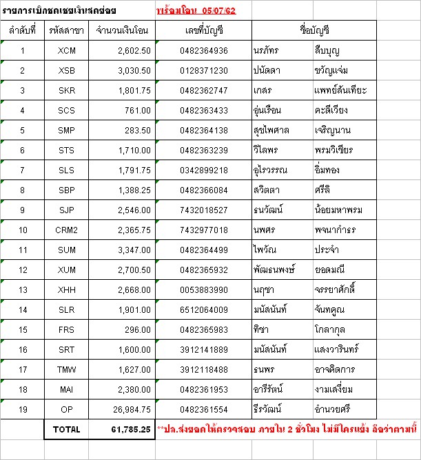 Re: ยอดโอนชดเชยเงินสดย่อย 5-7-2019