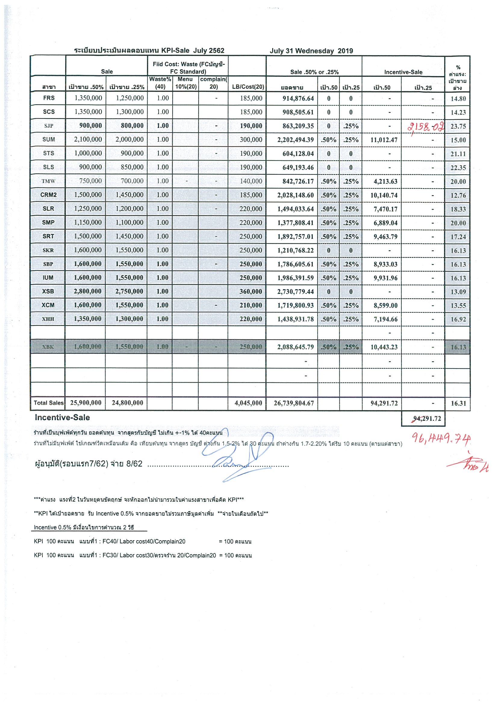 KPI ยอดขายเดือนกรกฎาคม จ่ายเดือนสิงหาคม 2562