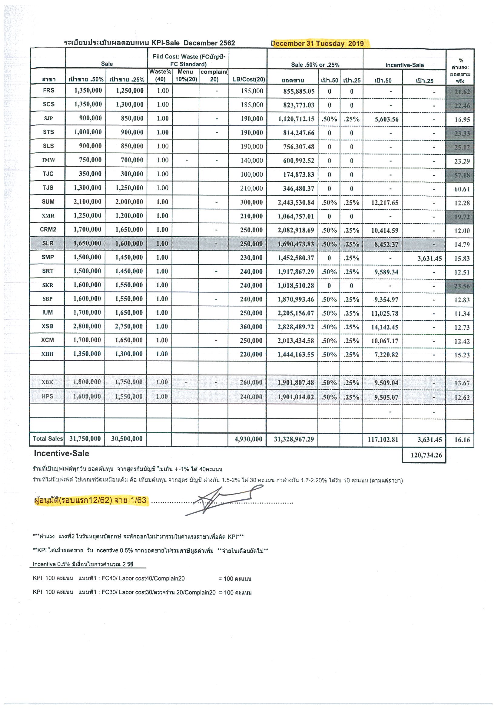 Re: KPI ยอดขายรอบแรก เดือนธันวาคม 2562