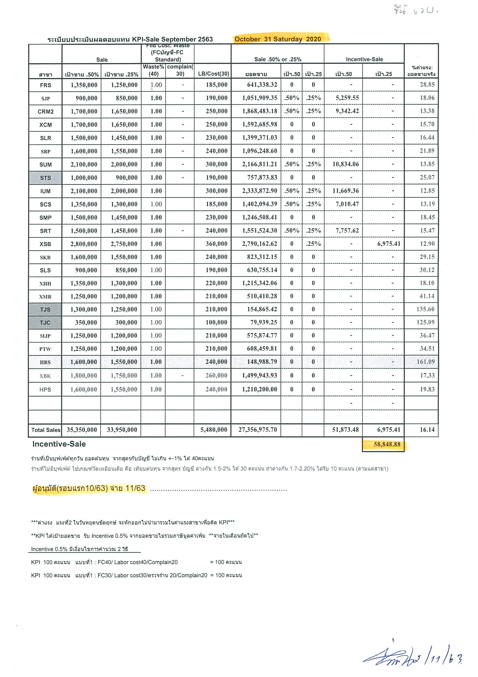 Re: KPI ยอดขายรอบแรก เดือนตุลาคม 2563