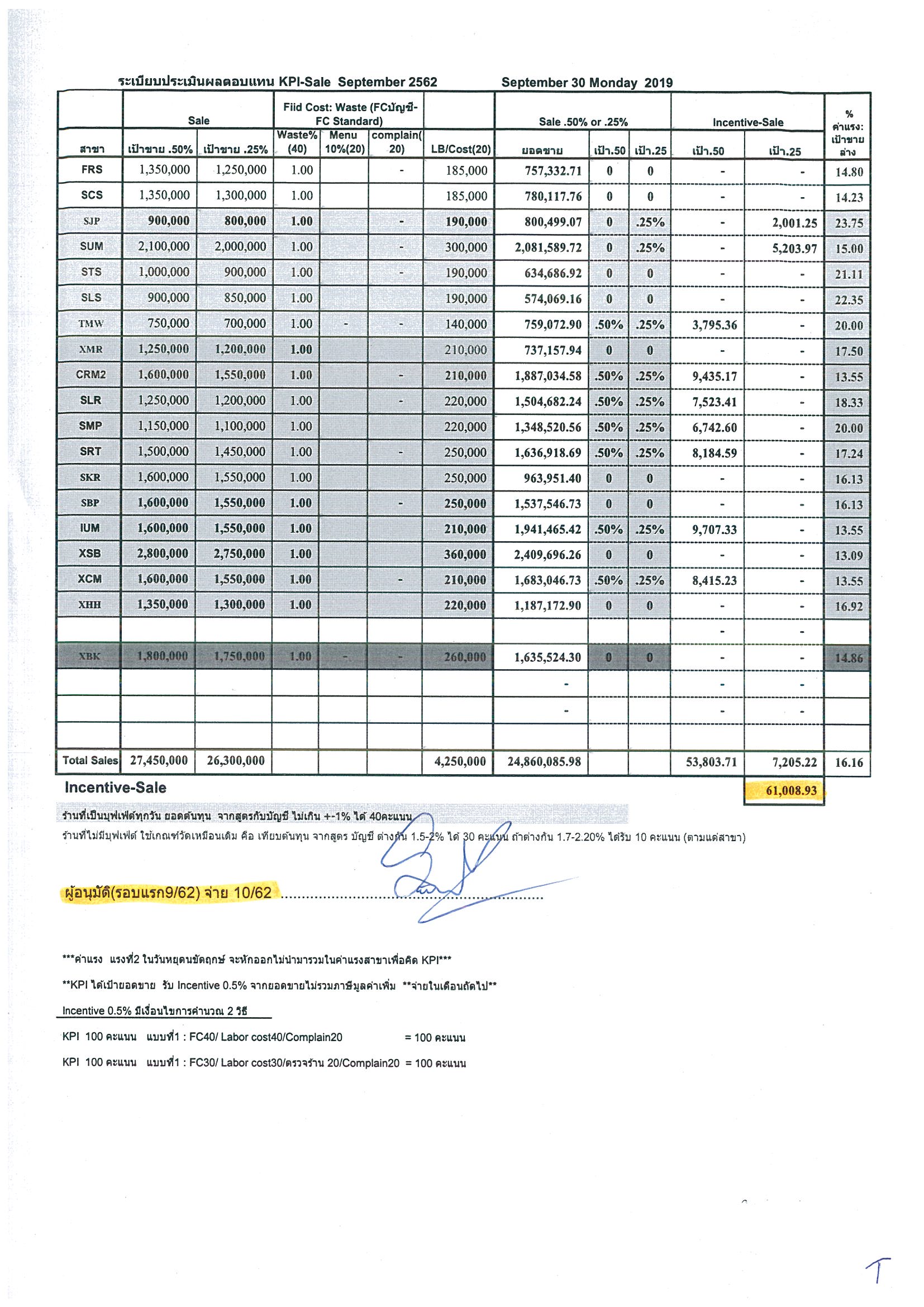 Re: KPI ยอดขายรอบแรก เดือนกันยายน 2562