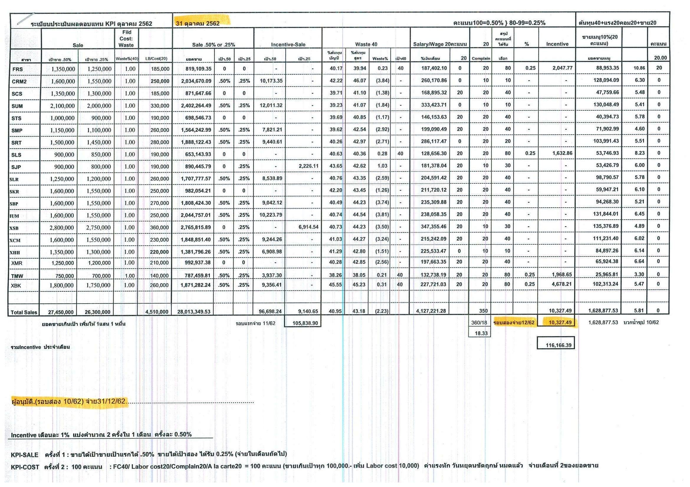 KPI รอบสอง เดือนตุลาคม จ่ายเดือนธันวาคม 2562