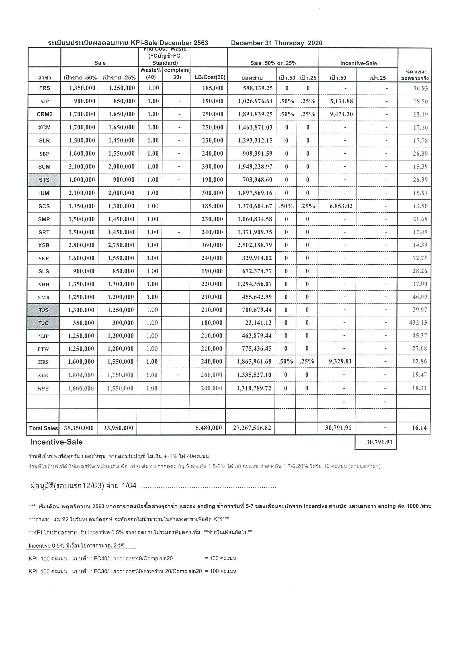 Re: KPI ยอดขาย รอบแรก เดือนธันวาคม 2563
